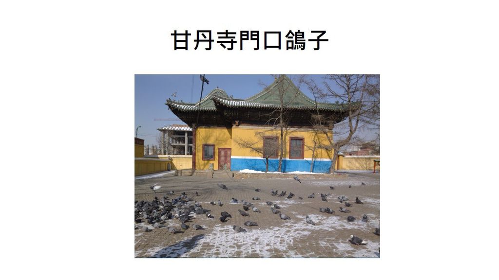 K和這位中學老師相談甚歡,他自稱平哥,兩個人看著甘丹寺內大佛像(如附圖一),彷彿看盡人世滄桑,不遠的寺門口,遍地麻雀,吱吱喳喳傳遞著春天的訊息,平哥說到大老遠跑到蒙古國投資房地產的原因,